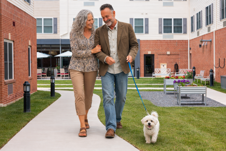 Wellness is built into daily life through on-site fitness classes like yoga and tai chi, walking paths, healthy dining options, and community partnerships that promote active, healthy aging.